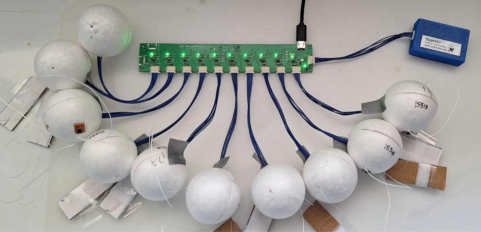 One of ICECHIP’s most innovative tools is the Hailsonde—a spherical probe designed to mimic the size (6.5 cm) and weight (24 grams) of a typical hailstone. Developed using Sparv’s Coinsonde platform, each Hailsonde contains a custom sensor board encased in a 3D-printed shell.